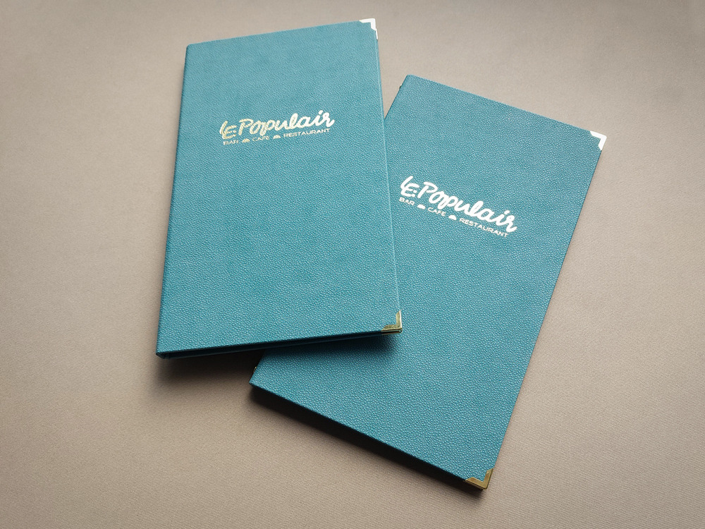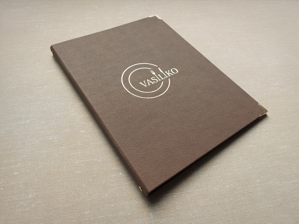 Χειροποίητοι δερμάτινοι κατάλογοι εστιατορίων από εξαιρετικής ποιότητας πυρογραφική δερματίνη. Διαθέτουν πρωτότυπο ανάγλυφο σχέδιο και βελούδινη υφή που εντυπωσιάζει. Η εξατομίκευση στο εξώφυλλο γίνεται με την εκτύπωση του λογοτύπου σας με βαθυτυπία (ανάγλυφο) ή χρυσοτυπία / ασημοτυπία. Με μια γκάμα 18 εντυπωσιακών αποχρώσεων, μπορείτε να βρείτε την ιδανική επιλογή που θα συμπληρώσει τέλεια το στυλ του εστιατορίου σας.